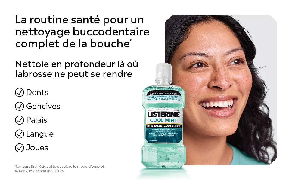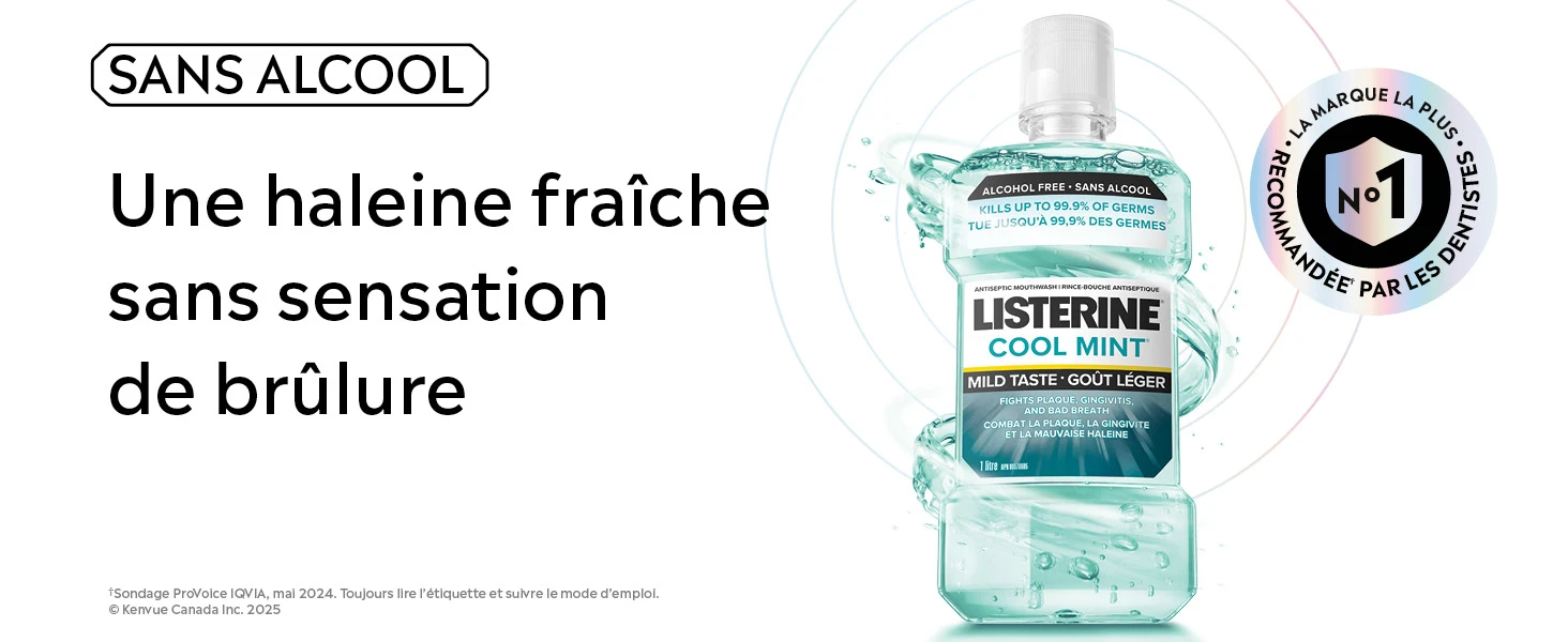 Conserver entre 15 et 30 °C. Le froid peut rendre le produit trouble mais n’affecte pas son efficacité. Il n’y a qu’un seul LISTERINE®. Les fabricants de LISTERINE® ne fabriquent aucun autre rince-bouche, ni sous d’autres noms ni pour d’autres compagnies. Emballage sécurité-enfants.